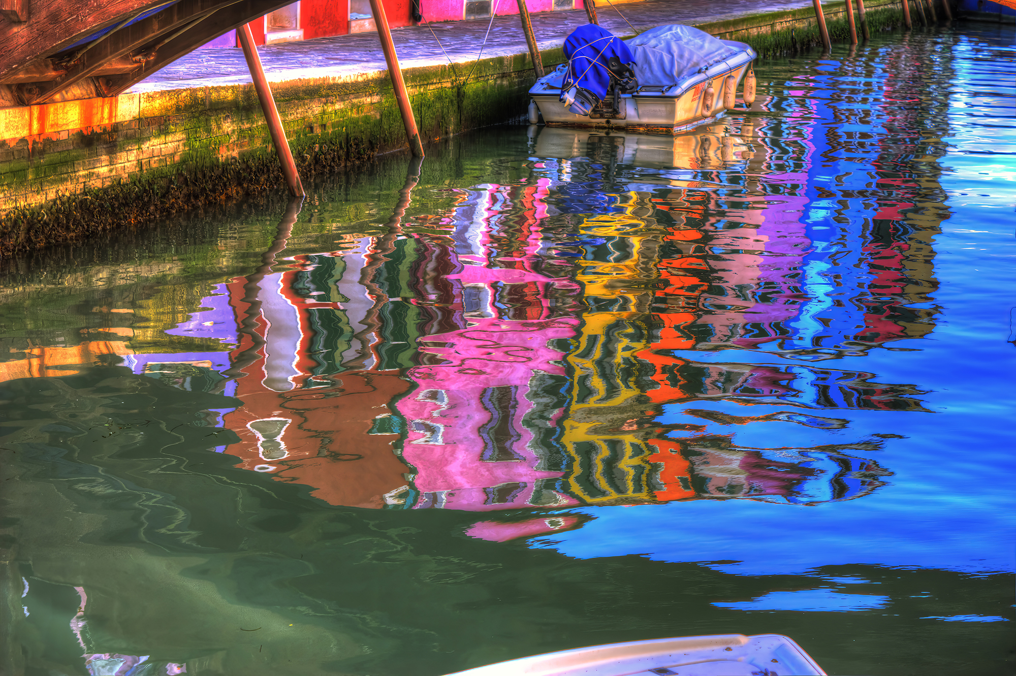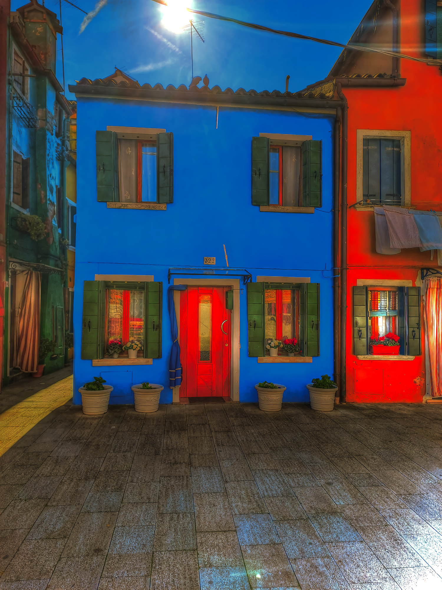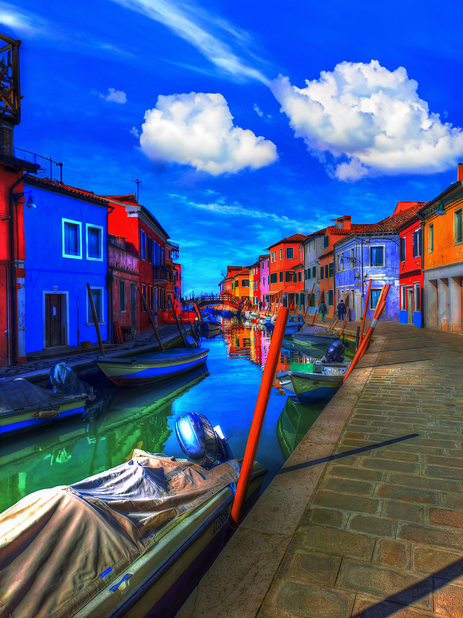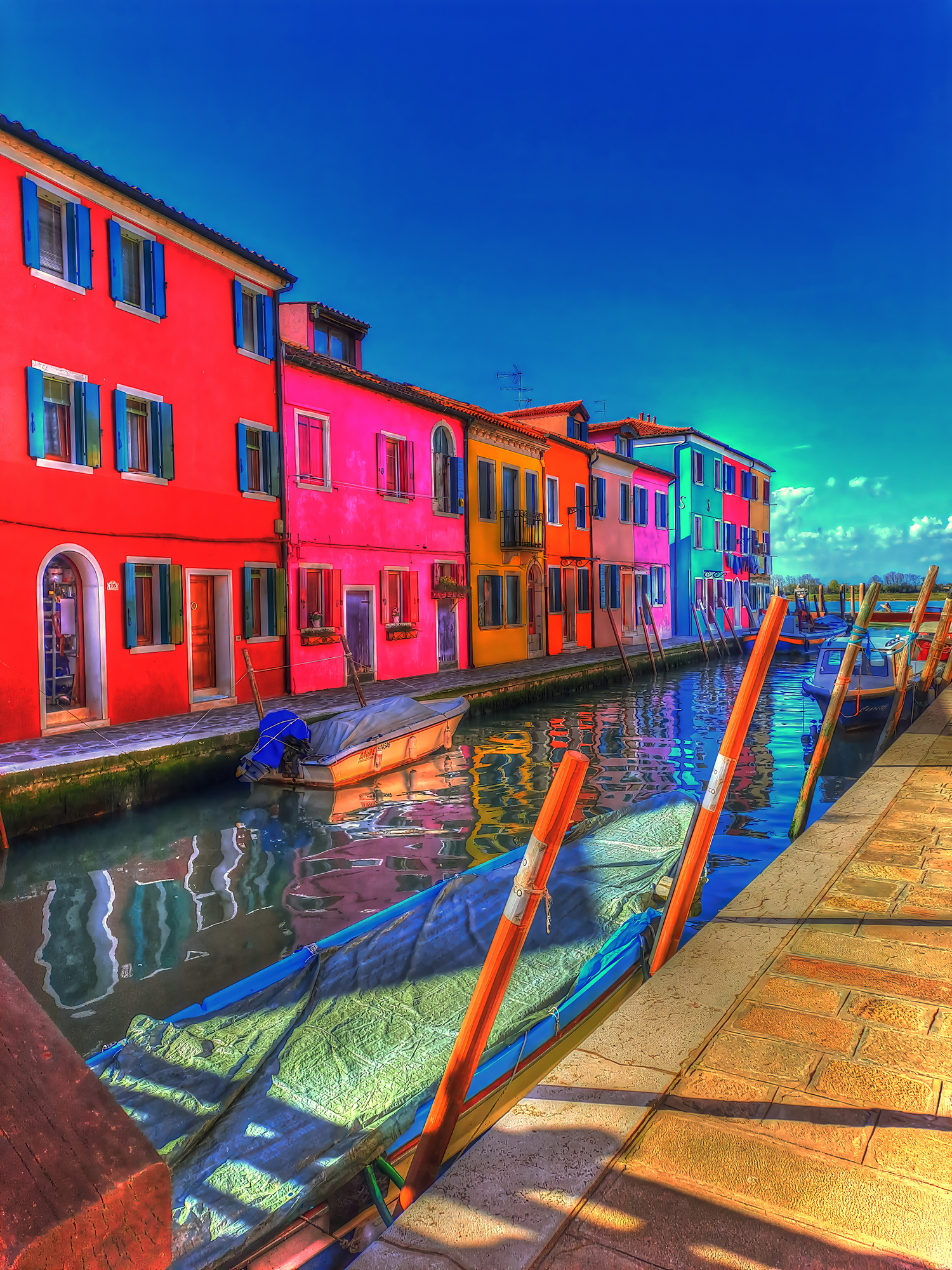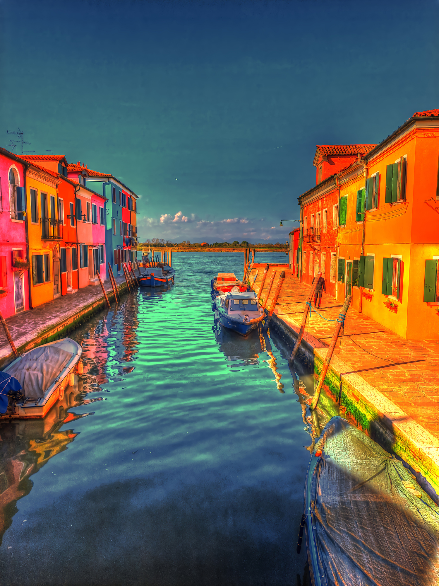 The way you approach the shores of the harlequin island of Burano is of crucial importance. The boat trip across the lagoon serves to free the mind of all the impurities that everyday existence generates, leaving the senses perfectly attuned and calibrated. If conditions in the lagoon are right, then all will go according to plan. The island will burst noisily into your conciousness and thoughts with its bright colours, taken form a naïf artist’s palette. However, Burano cona also avoid contact with strangers for as long as possible, playing hide-and-seek with them until it sweeps theatrically into view in all its dazzling finery.