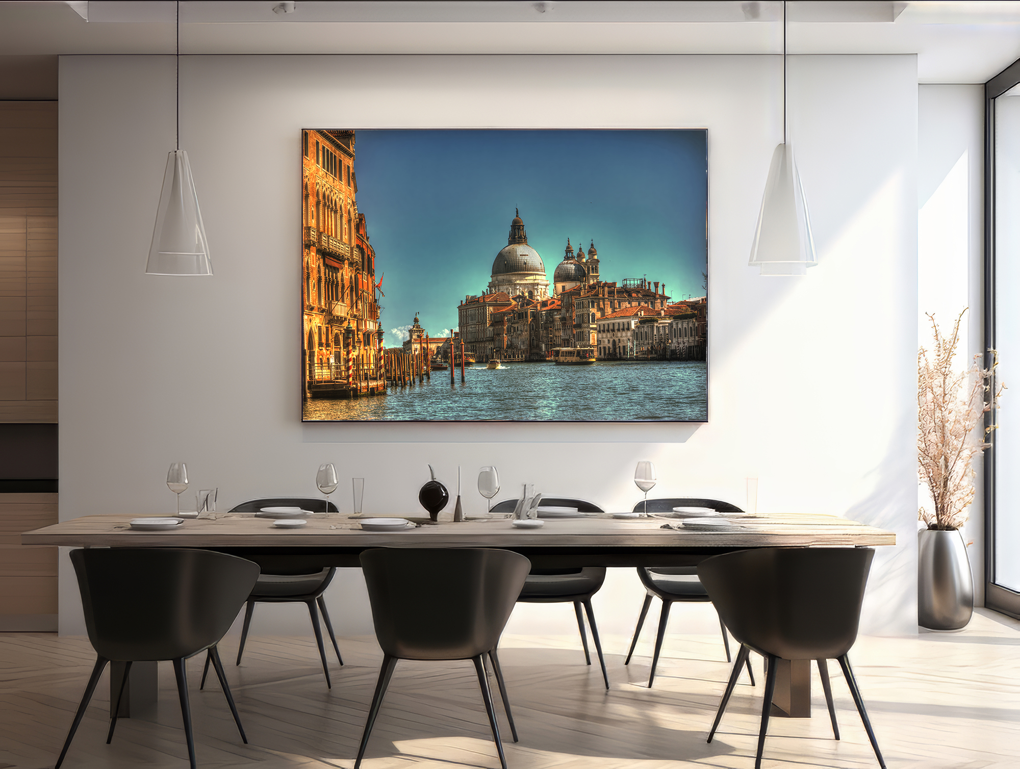 Fotografía de la Basilica de Santa Maria della Salute tomada desde el Ponte dell’Academia, con vista del Canal Grande en su salida a la Punta della Dogana.